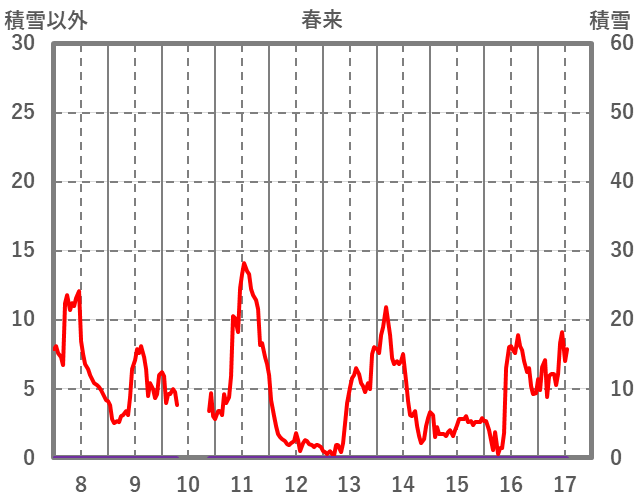 | 日 | 時 | 気温 | 降水 | 風向/風速 | 日照 | 積雪 | 降雪 |