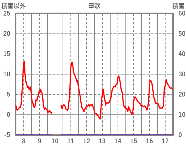 | 日 | 時 | 気温 | 降水 | 風向/風速 | 日照 | 積雪 | 降雪 |