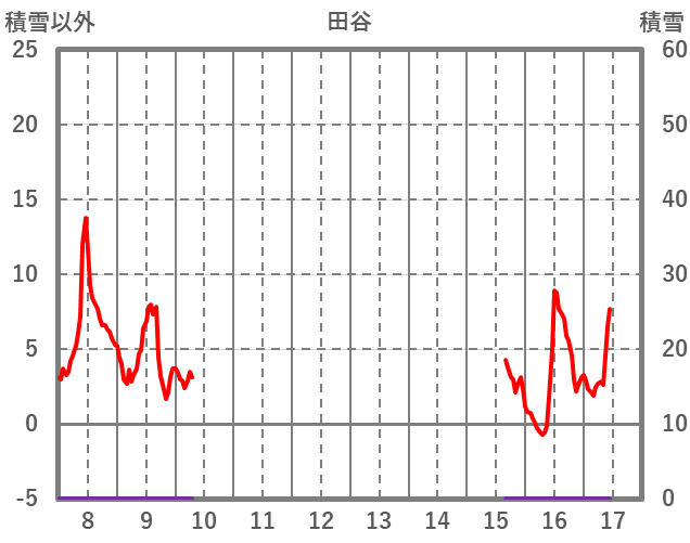 | 日 | 時 | 気温 | 降水 | 風向/風速 | 日照 | 積雪 | 降雪 |