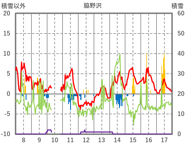 | 日 | 時 | 気温 | 降水 | 風向/風速 | 日照 | 積雪 | 降雪 |