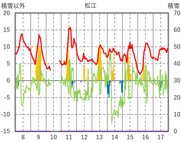 | 日 | 時 | 気温 | 降水 | 風向/風速 | 日照 | 積雪 | 降雪 |