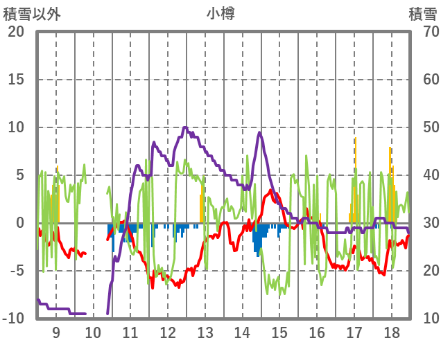| 日 | 時 | 気温 | 降水 | 風向/風速 | 日照 | 積雪 | 降雪 |