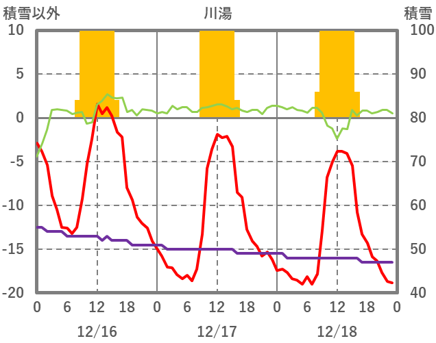 | 日 | 時 | 気温 | 降水 | 風向/風速 | 日照 | 積雪 | 降雪 |