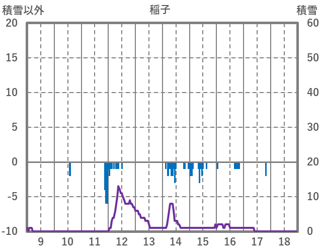 | 日 | 時 | 気温 | 降水 | 風向/風速 | 日照 | 積雪 | 降雪 |
