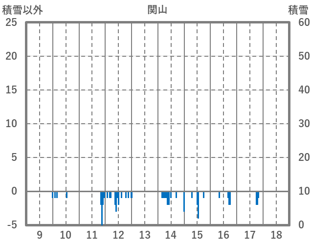| 日 | 時 | 気温 | 降水 | 風向/風速 | 日照 | 積雪 | 降雪 |