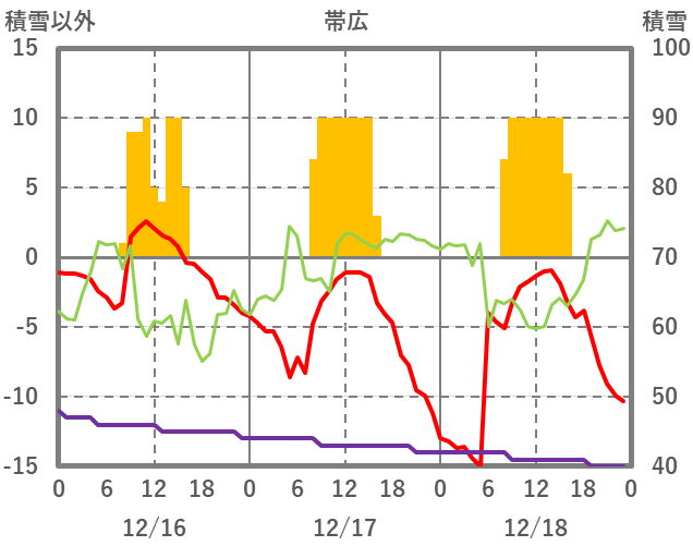| 日 | 時 | 気温 | 降水 | 風向/風速 | 日照 | 積雪 | 降雪 |