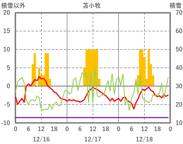 | 日 | 時 | 気温 | 降水 | 風向/風速 | 日照 | 積雪 | 降雪 |