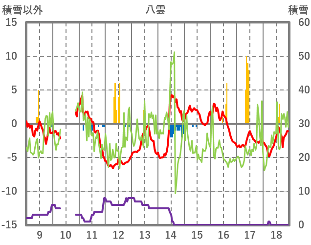 | 日 | 時 | 気温 | 降水 | 風向/風速 | 日照 | 積雪 | 降雪 |