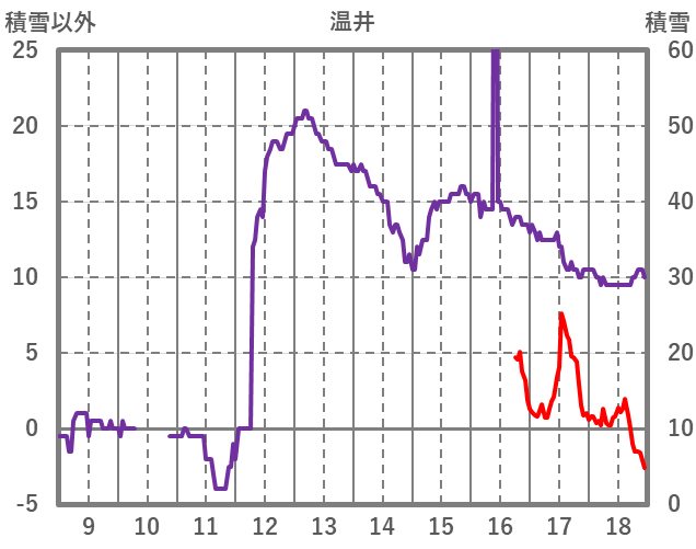 | 日 | 時 | 気温 | 降水 | 風向/風速 | 日照 | 積雪 | 降雪 |