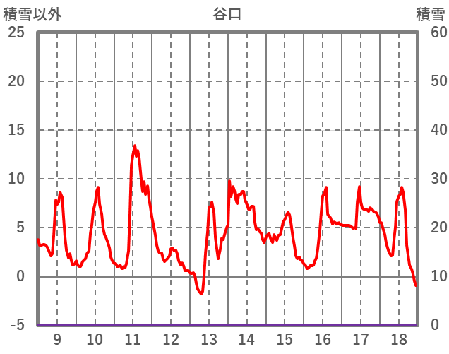 | 日 | 時 | 気温 | 降水 | 風向/風速 | 日照 | 積雪 | 降雪 |