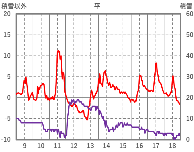 | 日 | 時 | 気温 | 降水 | 風向/風速 | 日照 | 積雪 | 降雪 |