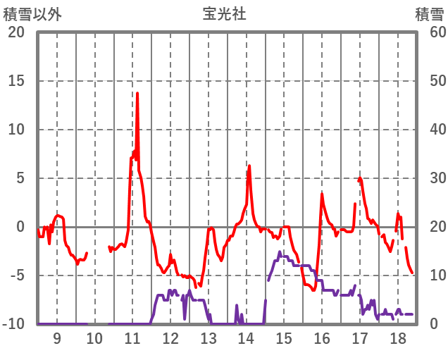 | 日 | 時 | 気温 | 降水 | 風向/風速 | 日照 | 積雪 | 降雪 |