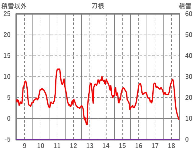 | 日 | 時 | 気温 | 降水 | 風向/風速 | 日照 | 積雪 | 降雪 |