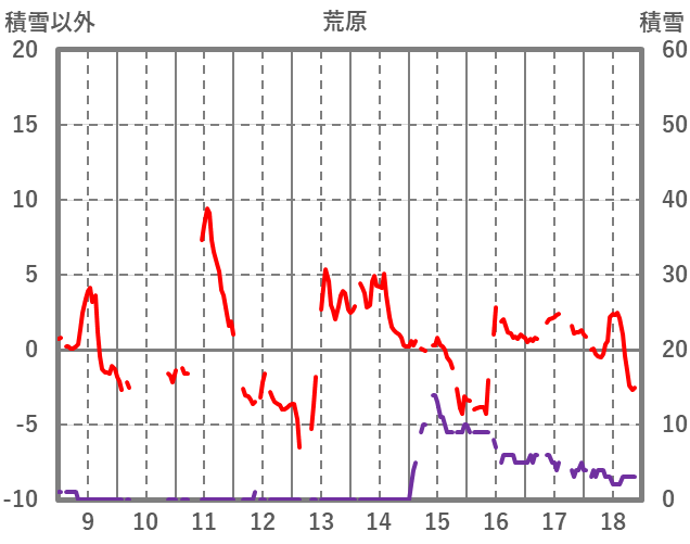 | 日 | 時 | 気温 | 降水 | 風向/風速 | 日照 | 積雪 | 降雪 |