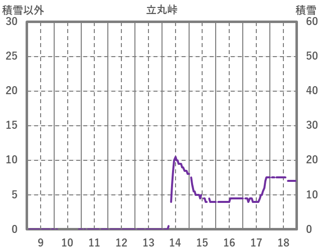 | 日 | 時 | 気温 | 降水 | 風向/風速 | 日照 | 積雪 | 降雪 |