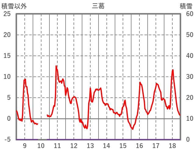 | 日 | 時 | 気温 | 降水 | 風向/風速 | 日照 | 積雪 | 降雪 |