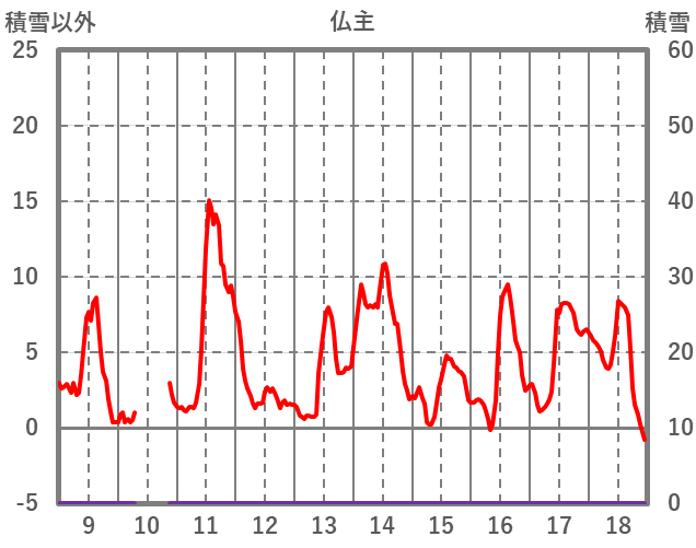 | 日 | 時 | 気温 | 降水 | 風向/風速 | 日照 | 積雪 | 降雪 |