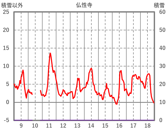 | 日 | 時 | 気温 | 降水 | 風向/風速 | 日照 | 積雪 | 降雪 |