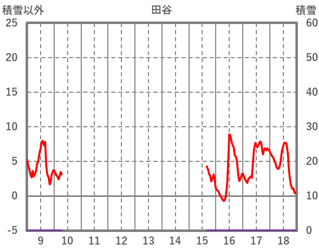 | 日 | 時 | 気温 | 降水 | 風向/風速 | 日照 | 積雪 | 降雪 |