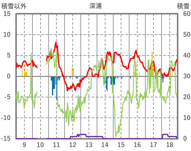 | 日 | 時 | 気温 | 降水 | 風向/風速 | 日照 | 積雪 | 降雪 |