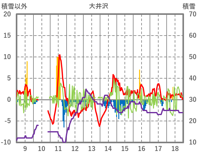 | 日 | 時 | 気温 | 降水 | 風向/風速 | 日照 | 積雪 | 降雪 |