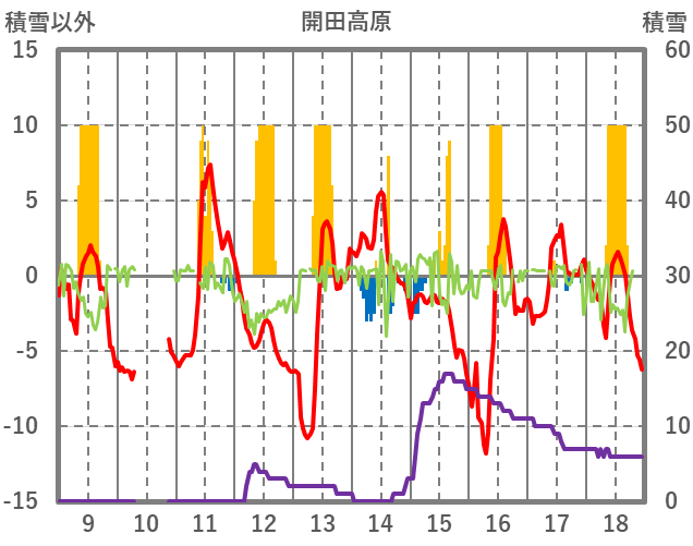| 日 | 時 | 気温 | 降水 | 風向/風速 | 日照 | 積雪 | 降雪 |