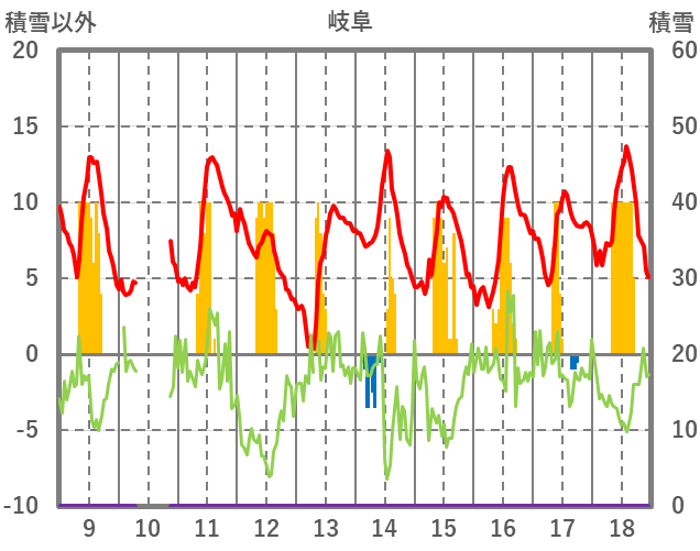 | 日 | 時 | 気温 | 降水 | 風向/風速 | 日照 | 積雪 | 降雪 |