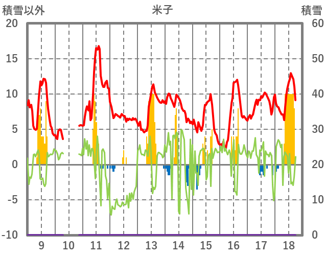 | 日 | 時 | 気温 | 降水 | 風向/風速 | 日照 | 積雪 | 降雪 |