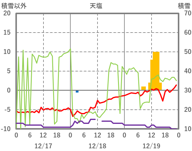| 日 | 時 | 気温 | 降水 | 風向/風速 | 日照 | 積雪 | 降雪 |