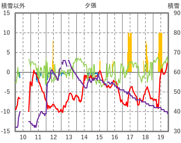 | 日 | 時 | 気温 | 降水 | 風向/風速 | 日照 | 積雪 | 降雪 |
