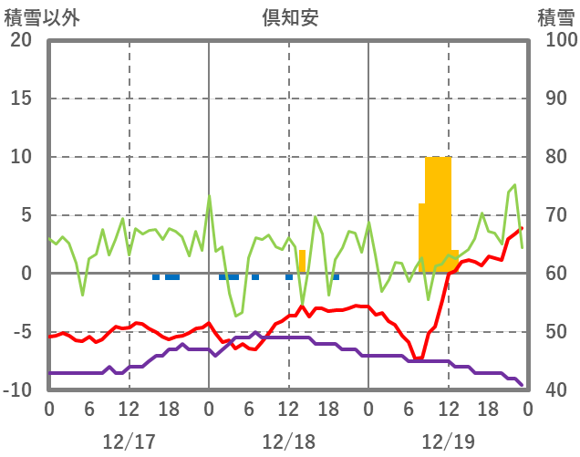 | 日 | 時 | 気温 | 降水 | 風向/風速 | 日照 | 積雪 | 降雪 |