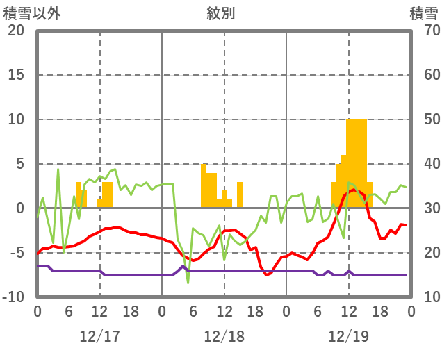 | 日 | 時 | 気温 | 降水 | 風向/風速 | 日照 | 積雪 | 降雪 |