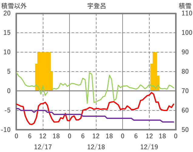 | 日 | 時 | 気温 | 降水 | 風向/風速 | 日照 | 積雪 | 降雪 |
