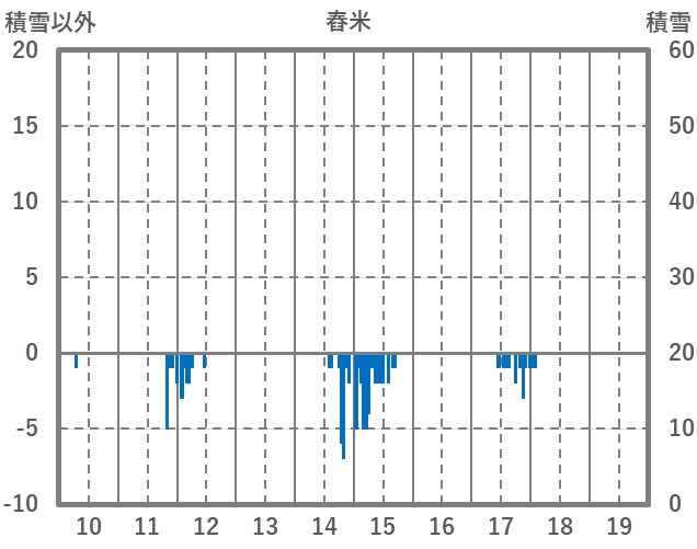 | 日 | 時 | 気温 | 降水 | 風向/風速 | 日照 | 積雪 | 降雪 |