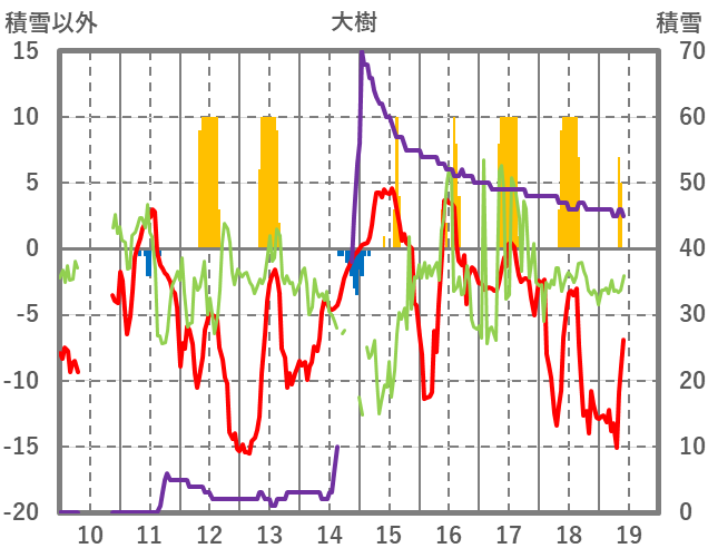 | 日 | 時 | 気温 | 降水 | 風向/風速 | 日照 | 積雪 | 降雪 |