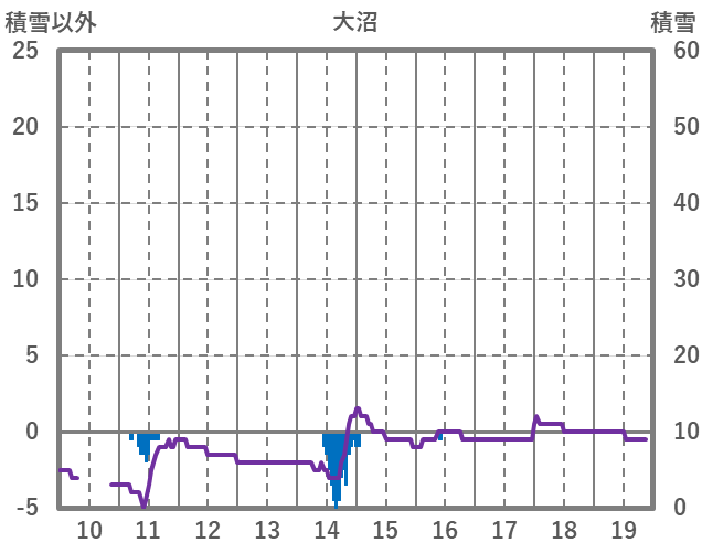 | 日 | 時 | 気温 | 降水 | 風向/風速 | 日照 | 積雪 | 降雪 |