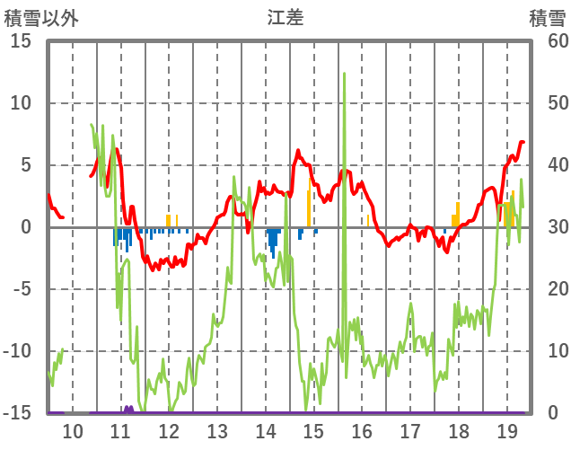| 日 | 時 | 気温 | 降水 | 風向/風速 | 日照 | 積雪 | 降雪 |