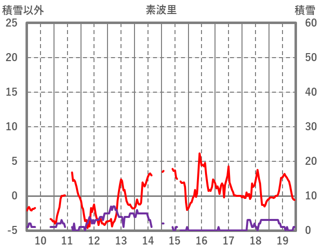 | 日 | 時 | 気温 | 降水 | 風向/風速 | 日照 | 積雪 | 降雪 |