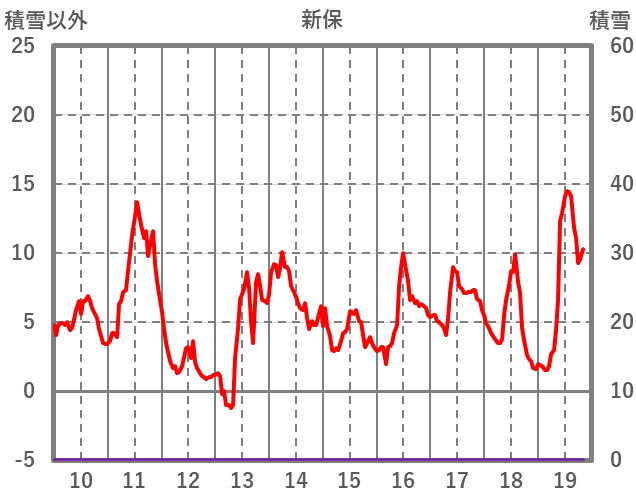 | 日 | 時 | 気温 | 降水 | 風向/風速 | 日照 | 積雪 | 降雪 |
