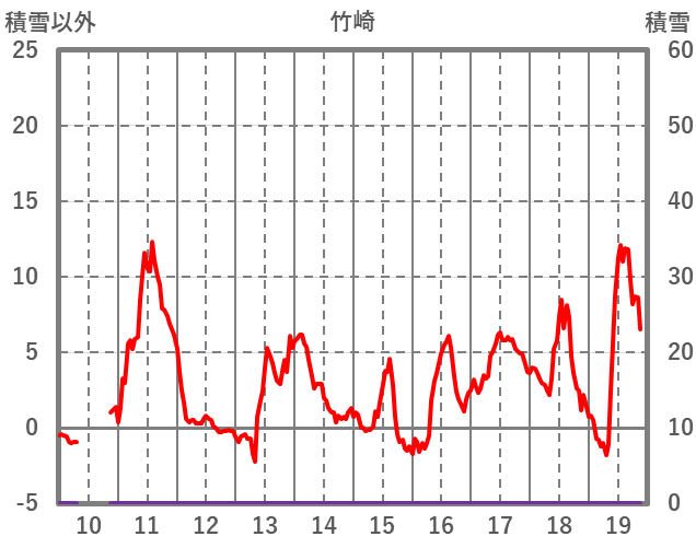 | 日 | 時 | 気温 | 降水 | 風向/風速 | 日照 | 積雪 | 降雪 |