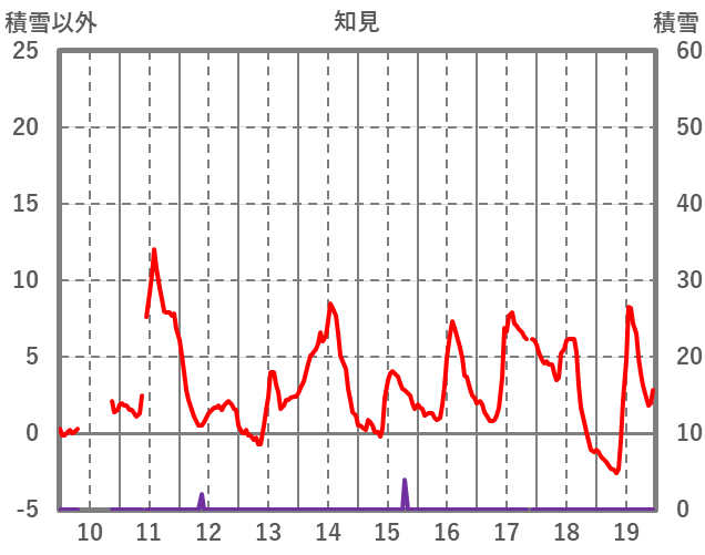 | 日 | 時 | 気温 | 降水 | 風向/風速 | 日照 | 積雪 | 降雪 |