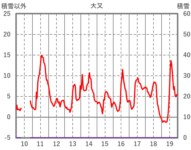 | 日 | 時 | 気温 | 降水 | 風向/風速 | 日照 | 積雪 | 降雪 |