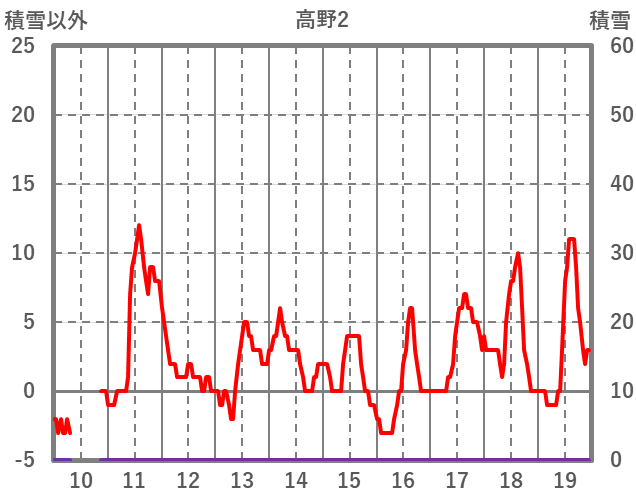 | 日 | 時 | 気温 | 降水 | 風向/風速 | 日照 | 積雪 | 降雪 |