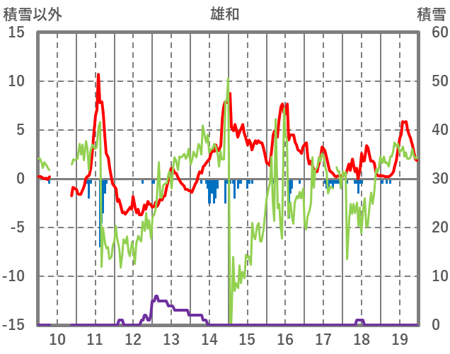 | 日 | 時 | 気温 | 降水 | 風向/風速 | 日照 | 積雪 | 降雪 |