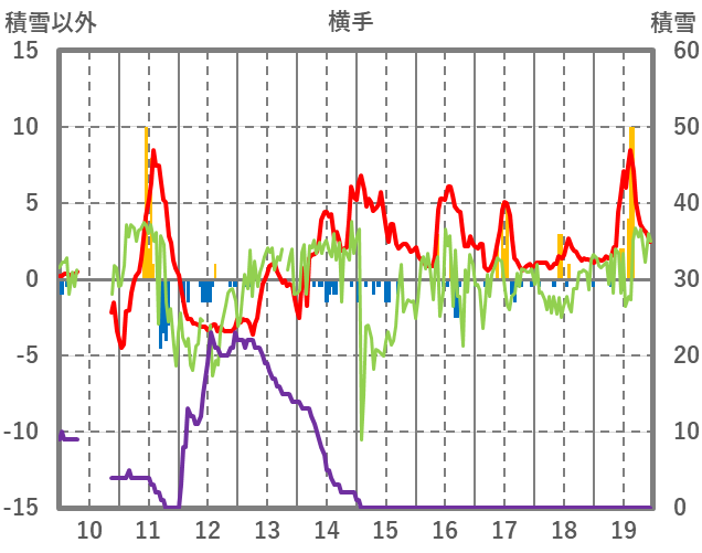 | 日 | 時 | 気温 | 降水 | 風向/風速 | 日照 | 積雪 | 降雪 |