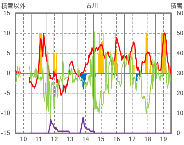 | 日 | 時 | 気温 | 降水 | 風向/風速 | 日照 | 積雪 | 降雪 |