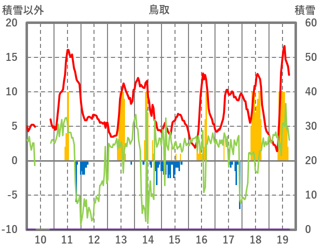 | 日 | 時 | 気温 | 降水 | 風向/風速 | 日照 | 積雪 | 降雪 |