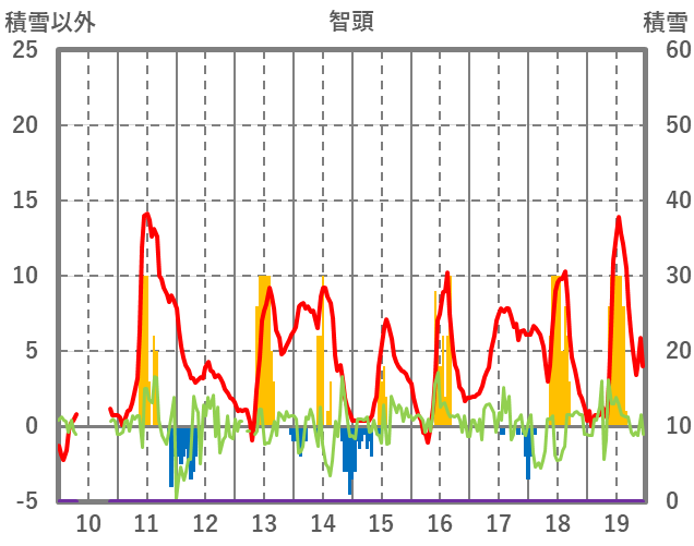 | 日 | 時 | 気温 | 降水 | 風向/風速 | 日照 | 積雪 | 降雪 |