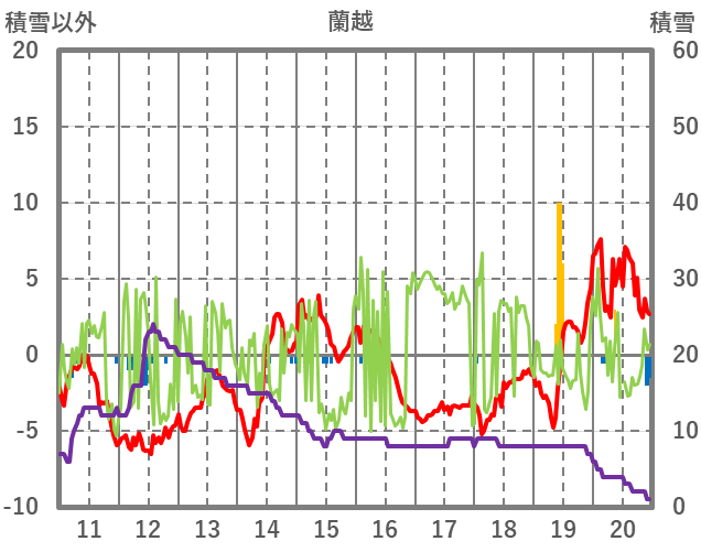 | 日 | 時 | 気温 | 降水 | 風向/風速 | 日照 | 積雪 | 降雪 |
