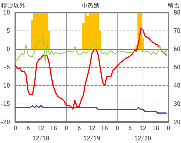 | 日 | 時 | 気温 | 降水 | 風向/風速 | 日照 | 積雪 | 降雪 |